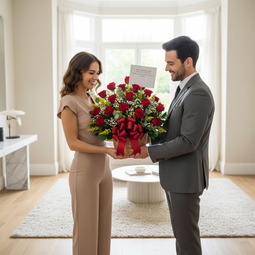 Never stop captivating that special being, send him this beautiful and majestic Scarlet Floral Arrangement in a wicker basket or similar, which contains